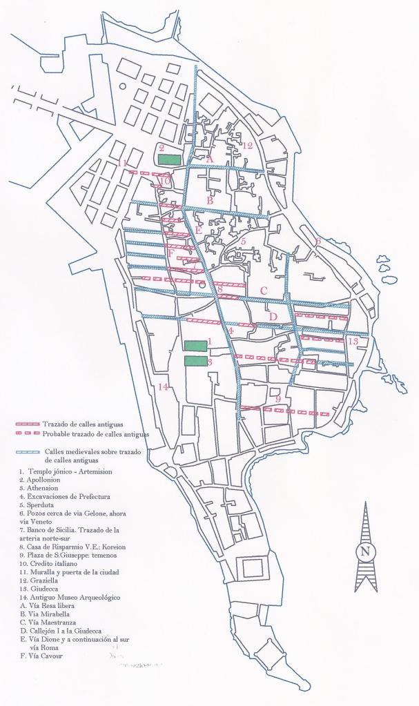 SIRACUSA. En Siracusa, la más importante ciudad estado de la Sicilia del siglo V a.C., los movimientos de expulsiones y entrada de ciudadanos deportados y mercenarios debieron influir en el tejido urbano, pero trazas de estas idas y venidas no han sido halladas todavía. Sí una planificación más tardía (siglos IV-III a.C.) entre el límite norte de la Akradina y Tyche que, según algunos, puede ser un reflejo de la planificación urbanística de la época de los tiranos.