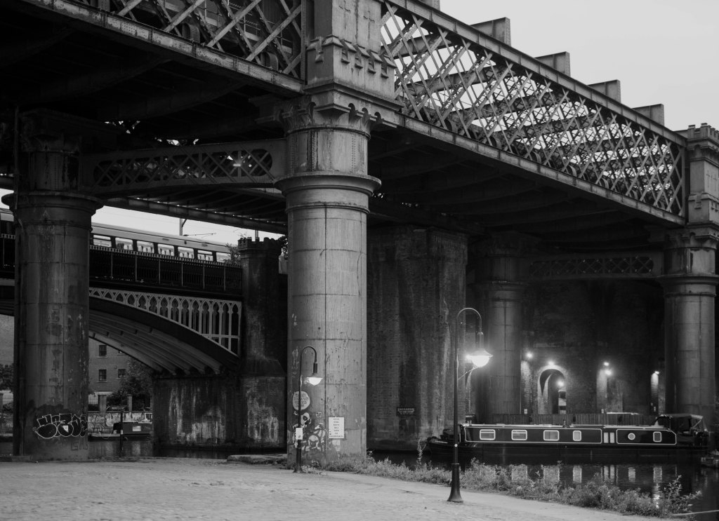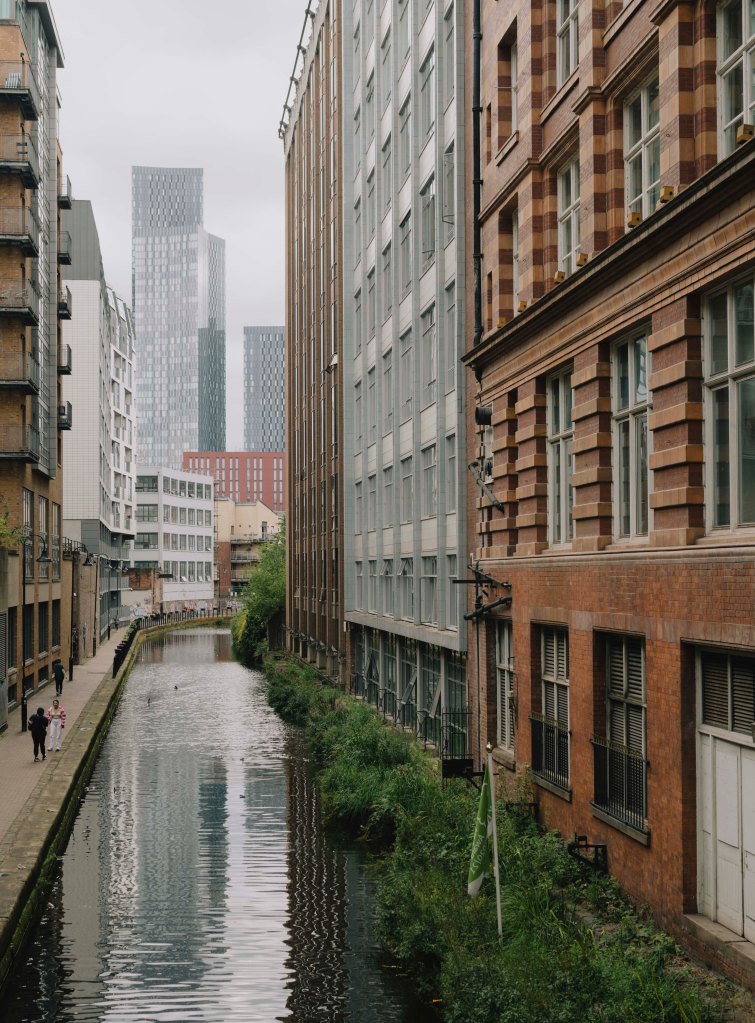 Antiguos edificios de ladrillo rojo junto a modernísimos rascacielos de cristal. Viejos edificios residenciales junto a hoteles brutalistas de decenas de plantas. Un antiguo sistema de canales para transportar mercancía junto al cual se han edificado flamantes bloques de pisos. Mires donde mires, Manchester es un constante desconcierto.