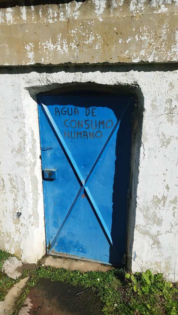 Una mano pasa por encima de las espigas del trigo, el polígono amorfo que se adivina a la derecha, tiene un magnetismo especial. En el tejado crecen los jaramagos, alguna aulaga, bastantes tréboles. Llega la sensación de haber alcanzado el final del camino, y siempre nos ha embargado una paz inexplicable. En el antiguo Egipto, y para los paseantes que coronan habitualmente este santuario cósmico, ha llegado el momento del pesaje de las almas. Psicostasis en proceso, Stonehenge, pirámide escalonada y en mi pueblo, depósitos de agua de consumo humano. Uno de los primeros recuerdos de mi vida fue el del pavor. Por la rendija que dibuja el arco de medio punto de la puerta, bullían en el interior los murgaños. Sus largas patas y ese cuerpo estilizadamente demoníaco hicieron que este hipogeo se me quedara grabado a fuego en la memoria. La danza de cientos de arañas, sacerdotisas de un templo olvidado, preservaron el magnetismo.