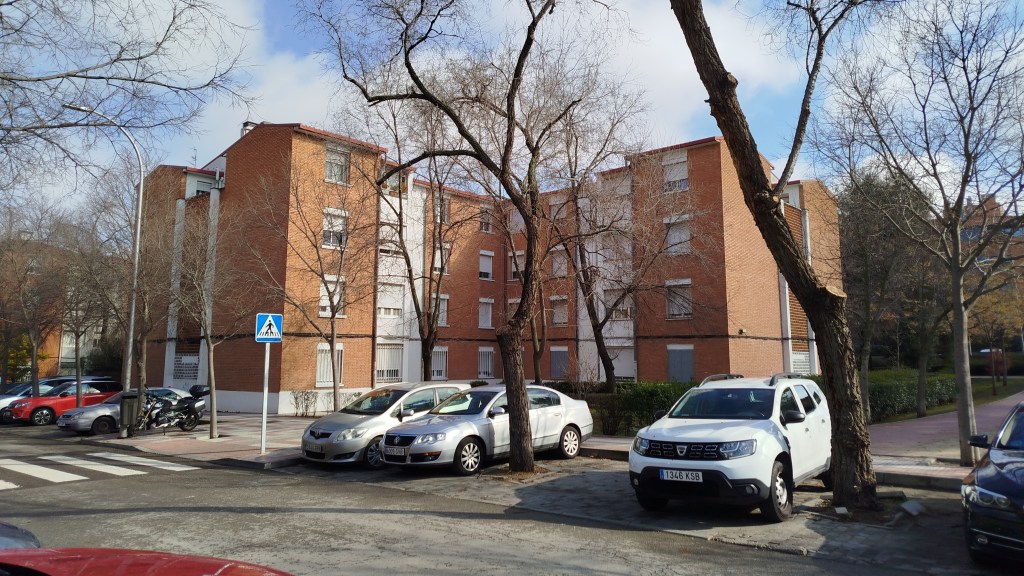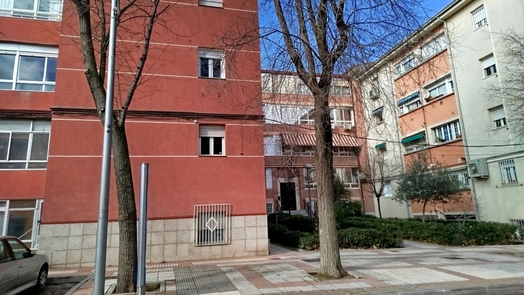 Utopías urbanísticas han sido recorridas en bicicleta por Zuazua y han sido procesadas a fin de cuentas después de “conversaciones con vecinos, arquitectos, historiadores o antiguos alcaldes” (reverso de la publicación). El caso es que hace pocos días también, nos desviamos desde la A-2 por la calle Alcalá y accedimos a esa singular Ciudad Pegaso, un prodigio del racionalismo, un concepto macerado y amasado en las ollas de lo euclidiano y La Bauhaus, y de la calma absoluta que se exhalaba entre los extremos de aquel lapso anticiclónico, que es cuando uno se puede consagrar como si no hubiera mañana a la exégesis de todos estos asuntos mundanos. Las calles de la colonia tienen nombre de números, salvo alguna excepción. El lugar (que pertenece al barrio de Rejas, que forma parte a su vez del distrito de San Blas-Canillejas) se halla constreñido entre los ejes de la mencionada A-2, de la M-40 y de la M-14, y da la sensación de ser un islote de hombres (no tan) libres hoy, en un régimen de semi aislamiento que lo hace diferente a sus movidas circundantes, como para tenerlo en brazos, arroparlo y darle un beso de buenas noches. El acceso a uno de los edificios (de los obreros) fue providencial, yo diría que hasta extático: las puertas abiertas en canal, el vacío existencial y la ausencia de una señal de warning que indicase lo contrario, nos hizo hasta coger el ascensor y subir a una de sus plantas, coqueta y muy aseada toda entera. No era otra cosa que una cuestión de higiene comunal y de correspondencia elemental con sus desconocidos inquilinos.