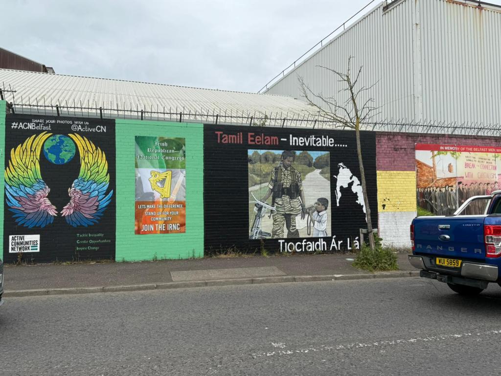 “Los protestantes tienen su zona de murales y los católicos, la suya. Están separadas por puertas que cierran todas las noches” (afirma Ana Muñoz, sobre la condición del concepto “barrios de Belfast”). Es una idea muy deftoniana. Sienten (parte de) la ciudad como suya, un espacio en el que lo lejano y adyacente se hibrida, se organifica. El mensaje, ergo, se consolida. Los Acuerdos de Viernes Santo (1998) son el trasunto de esa nave anegada, gris, sombría, con aperturas a los lados. La concepción del yo o la descarada tendencia al yoísmo descansa en las espaldas del otro o del residuo lo que hay detrás de la pared. Entregarnos a la alteridad supone que la noción “Belfast” sea o deba ser en sí muy lacaniana también.
