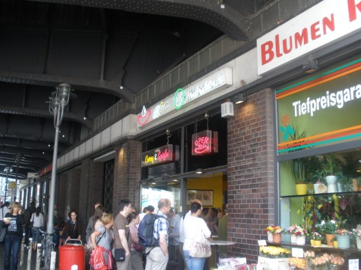 Adoro Berlín, joder, igual que uno que vive en la cara B de una vía del tren, de un río o que reside separado del vecino por una verja, que es otra muestra de realidad/ficción, pero en cortometraje. Si los muros no existen, habrá que inventarlos. En definitiva, uno siente y padece la sensación de sentirse cortejado por las cosas de la cotidianidad, como el adoquín y la franquicia cafetera. Como ya les he comentado, unos de los momentos sinteticoálgidos del S-Bahn de Berlín (abreviatura del alemán Stadtschnellbahn, que viene a significar en castellano “tren rápido metropolitano”) no fue otro que el que transcurría por debajo del ferrocarril en el cruce con la Friedrichstrasse. En los bajos de lo más urbano del mundo, nos jalábamos a menudo aquellas deliciosas currywurst. Recuerdo el angosto establecimiento de aquel hombre superior después de ser o estar tan cuco, incrustado entre la calzada y el viario de la parte de arriba, eran las salchichas más curradas del mundo hasta entonces conocido.